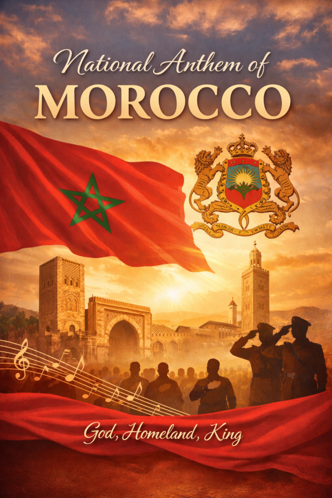 Some national anthems remain confined to ceremony. They appear on official calendars, mark diplomatic occasions, and then fade back into protocol. Morocco’s national anthem feels different. It lives in institutions, certainly, yet it also lives in memory, in schools, in football stadiums, in national celebrations, and in the emotional reflexes of ordinary people. It is one of the Kingdom’s official emblems, alongside the flag and coat of arms, which already says something important about its symbolic weight in Moroccan public life.