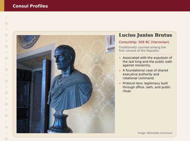 Download A visual registry of selected office-holders and republican authority — a concise, design-led guide to Rome’s key magistrates and power structure.📥