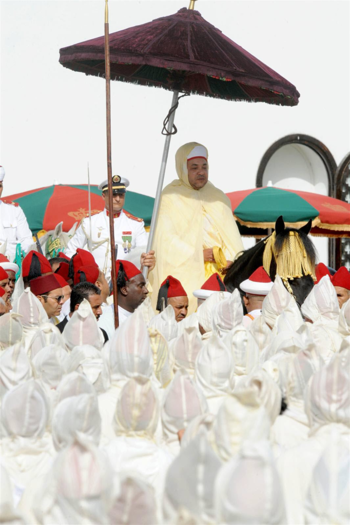 Le choix du Mechouar n’est pas un détail : c’est une scénographie d’État. Un espace ouvert, frontal, où l’on voit l’ordre des rangs, la discipline des trajectoires, la hiérarchie rendue calme, presque évidente. Les comptes rendus officiels de la cérémonie rappellent l’organisation : présence de la famille royale, participation des représentants de l’administration territoriale et des délégations régionales, clôture ritualisée.